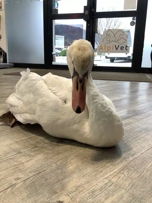 Aujourd’hui, pour la 5ème fois en deux mois, un cygne est conduit à la clinique pour morsures multiples infligées ce matin par un chien divagant sur le Paquier. De multiples perforations sont observées sur le dos et sont pronostic vital est réservé. Nous prodiguons actuellement les premiers soins avant son transfert vers un centre de sauvegarde.